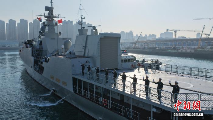 中新社青岛12月4日电 越南海军“陈兴道”号导弹护卫舰4日上午结束访问交流活动,离开中国青岛某军港。中方在码头举行欢送仪式,中国人民解放军北部战区海军官兵代表参加。