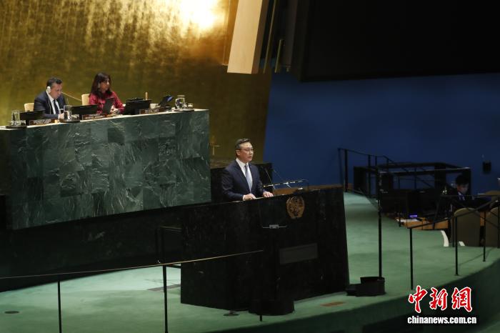 当地时间12月4日,纽约联合国总部,联合国大会举行首个纪念“反对单边强制措施国际日”会议。中国常驻联合国副代表孙磊在会上发言,呼吁少数西方国家立即、无条件、彻底取消单边强制措施。 中新社记者 廖攀 摄